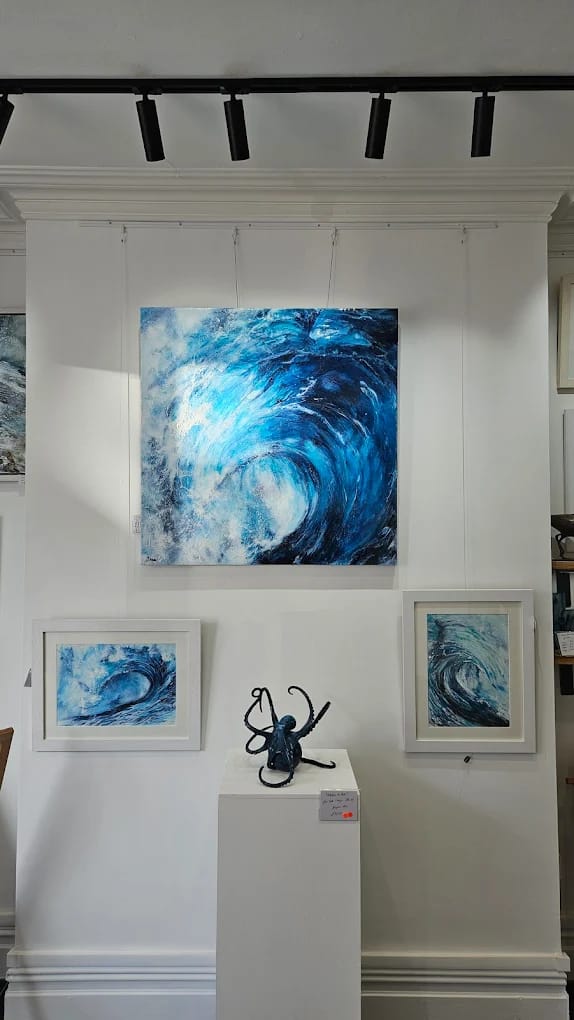 “I wanted the gallery to be a calm place… The artwork is arranged so it can breathe, with space around each piece. There’s no pressure to buy anything. People can come in, sit down, talk about art, and just enjoy being here.”