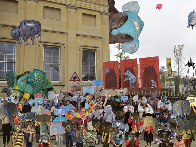 Using the tale of Lizzie as inspiration, Goddard organised elephant mask workshops and a procession through the city centre. Over 100 people donned handmade masks and banners to celebrate Lizzie’s life, parading from Swansea Railway Station to the museum where she once stood.