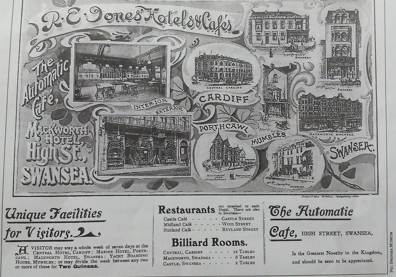 The success of the Mackworth Hotel venture led Jones to expand, opening additional automats in Cardiff and at The Yacht Cafe in Mumbles. The Mumbles location operated until 1920-21, when it became the Beach House café.