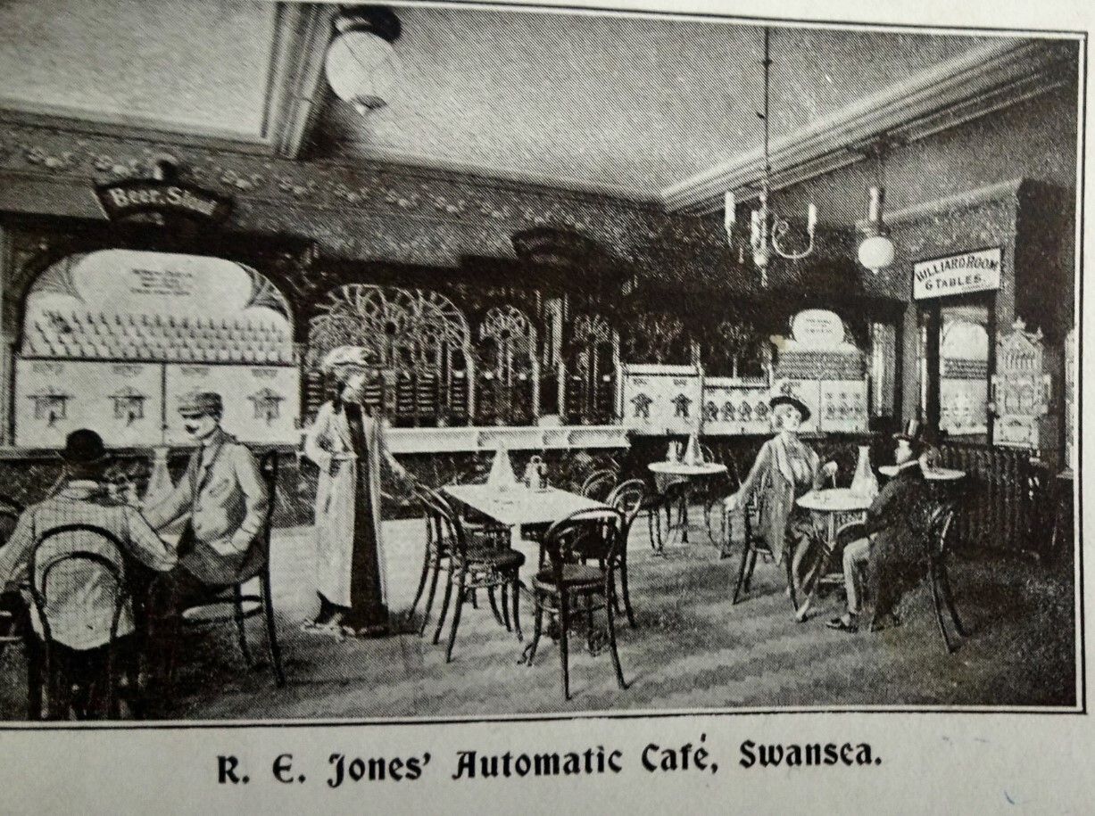 The £4,000 venture emerged after Walter Elwy-Jones, son of Welsh entrepreneur Richard Edwin Jones, visited Berlin and brought the concept back to Swansea. While Britain's first automatic café, the concept had originated in Berlin with the Automat GmbH in 1889.
