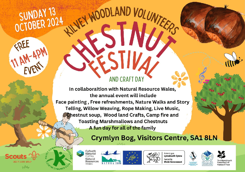 🌰 Chestnut Festival: Enjoy nature walks, willow weaving, rope making, live music, chestnut soup, toasting marshmallows and much more at this free family festival hosted by Kilvey Woodland Volunteers. It’s at the Crymlyn Bog Visitors Centre (SA1 8LN) from 11 AM - 4 PM.