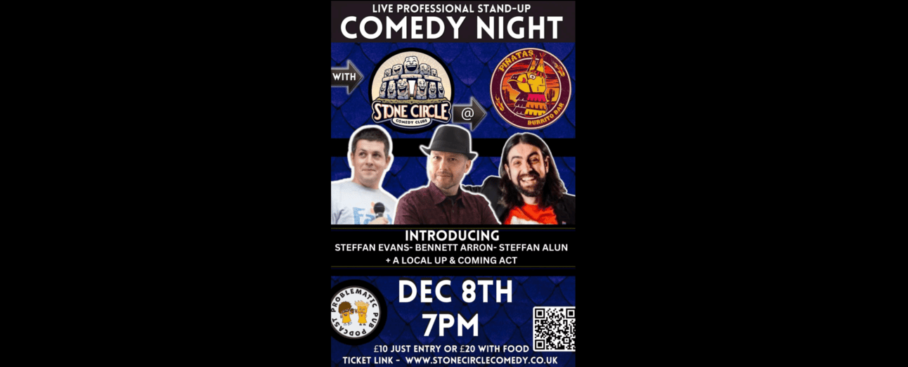 😆 Stand-up Comedy: Enjoy a night of laughter at the Stone Circle Comedy Club, hosted by Pinatas Burrito Bar, with acts including Steffan Evans and Bennett Arron.