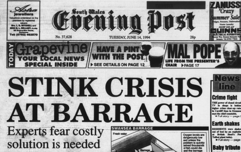 South Wales Evening Post — “Stink crisis at barrage” (14 June 1994)
