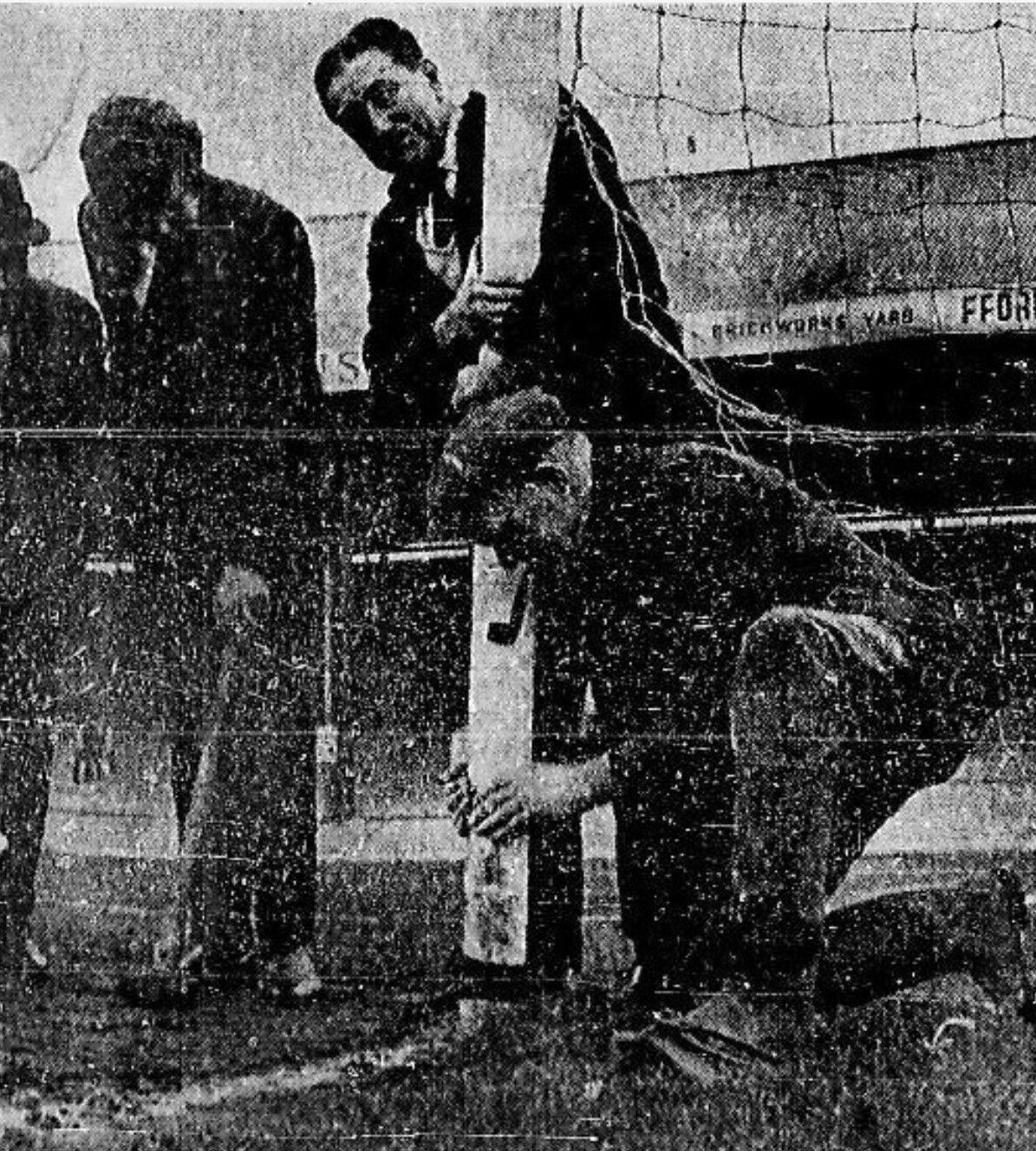 Goalposts borrowed from Cardiff City were rushed to the ground, but weren’t needed as a delay to the game was narrowly avoided after the posts were hastily re-inforced with an “angled iron wand.”