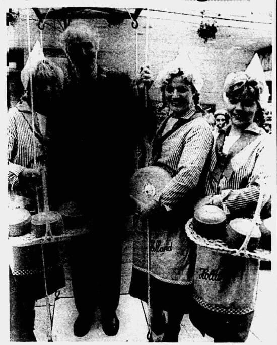 The campaign was led by five young women from the Netherlands—Natasja Jas, Hester de Boer, Gitte Bergsma, Margot Raap, and Heidi van Bodegraven—dubbed the “Dutch Dairy Girls.” Dressed in traditional costume, complete with lace bonnets and wooden clogs, they visited schools, pubs, hotels, and colleges across the city, offering samples of Gouda and Edam in flavors like cumin seed and peppercorn, while chatting about Dutch culture.
