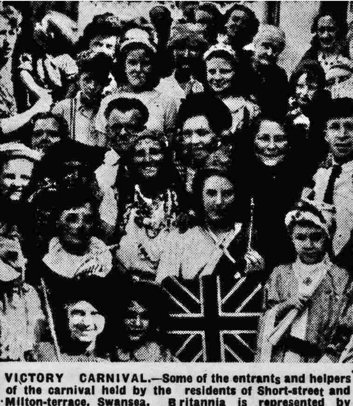 The celebrations were particularly moving in Milton Terrace in the city centre, which had suffered some of the worst damage in the Swansea Blitz - three nights of German bombing that flattened much of the centre of town. Here, residents held an "impressive religious service in the street," with householders giving addresses and prayers while united singing "brought tears of joy to the majority who attended.”